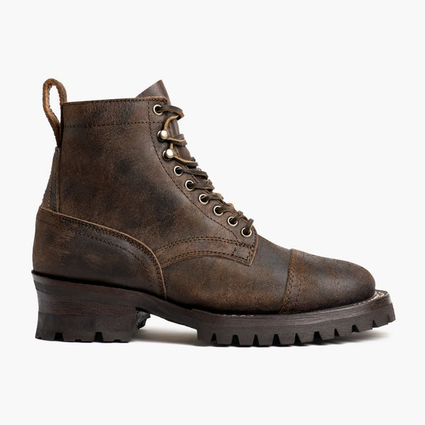 Built for the men who wear their boots hard. The Rugged & Resilient matte leather upper, sourced exclusively from Tier 1 USA cattle hides, was custom created to look great with years of hard wear and minimal care. This Captain also features our proprietary StormKing® rubber lug outsoles for added traction and durability. From the Kevlar® blend laces to the durable steel shank, every material was carefully created so that you can go the extra mile with confidence.