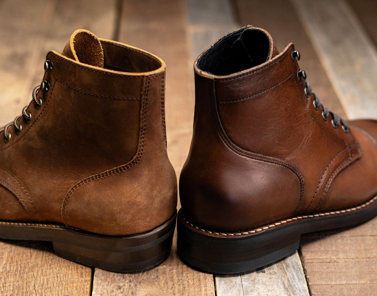 All Leather Internal ComponentsThe Captain prioritizes “out of the box” comfort with memory foam and heat-activated counters, molding quickly to your foot. The Heritage Captain, built with leather insoles and counters, requires break-in while shaping to your foot over more time.