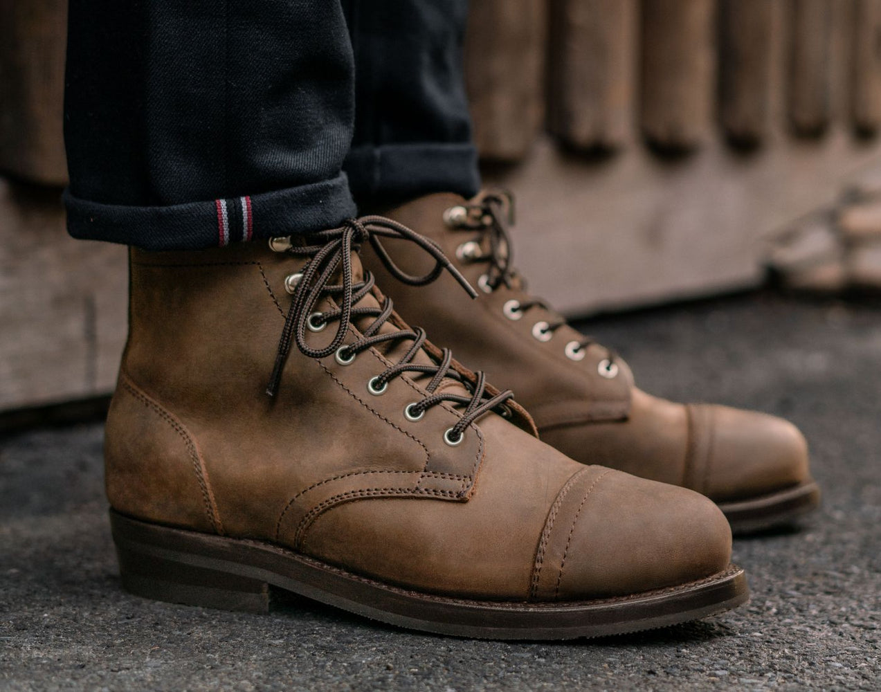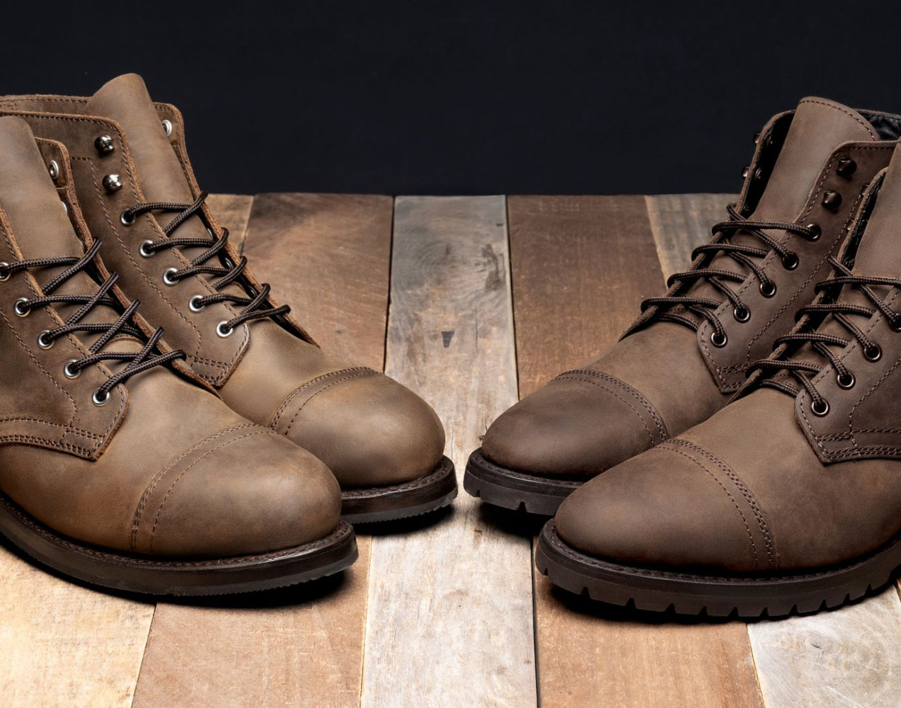Cap Toe ConstructionThe Heritage Captain has a 5oz leather toe cap overlay on top of the vamp, providing enhanced protection and beefier look. The Captain’s cap toe and vamp are skived and stitched together, which offers less toe protection but a sleeker and more refined look.